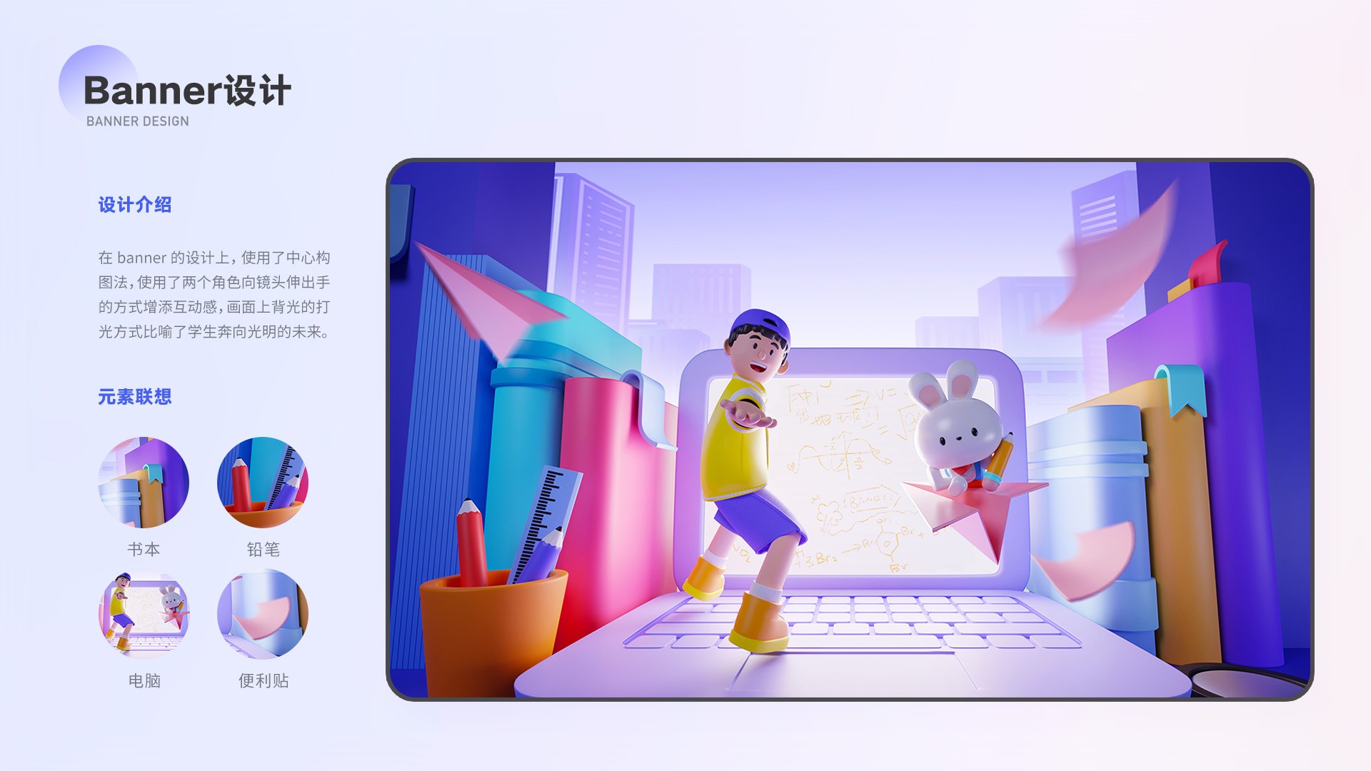 在2023年年初开学时,乐学教育在线教育平台为了提高用户互动性和参与度,开展了互动性提升项目。我在项目中担任角色设计、banner设计和图标设计等工作,提升了用户的学习体验和参与度。